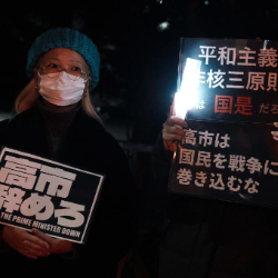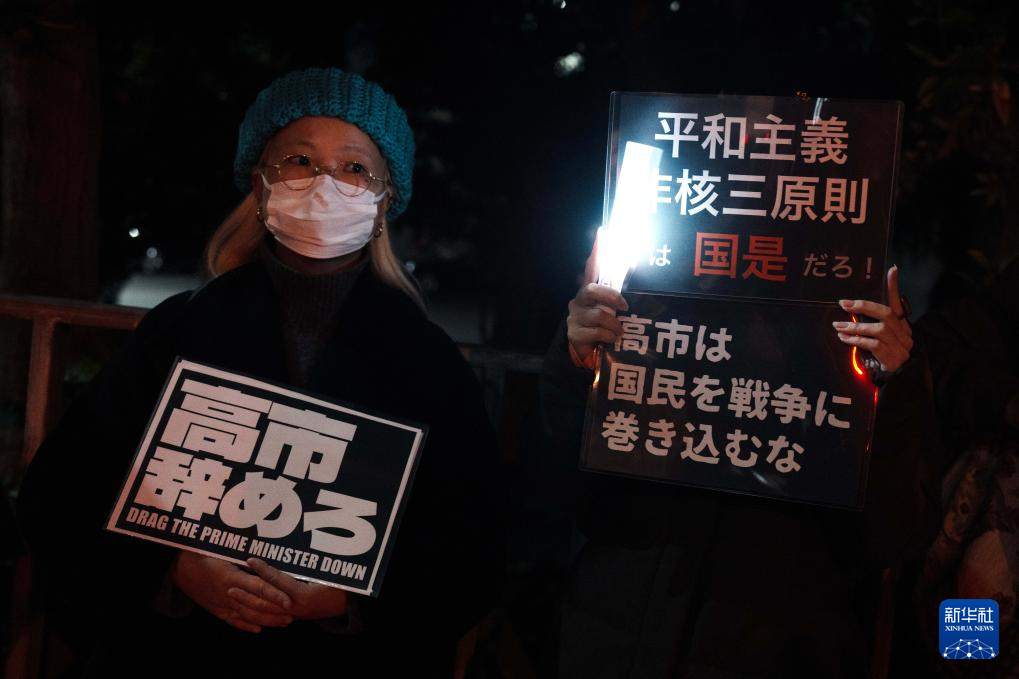 数百名日本民众21日晚在位于东京的首相官邸前举行集会,抗议日本首相高市早苗近日在国会发表的涉台错误言论,要求其撤回相关表态并作出解释和道歉。