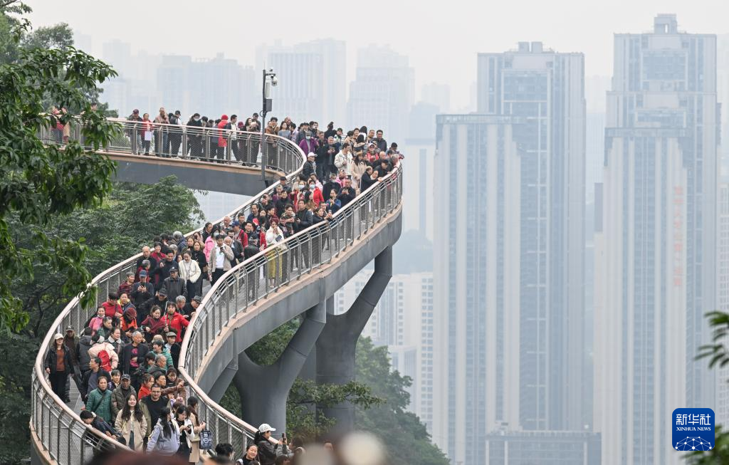 11月24日,人们在重庆半山崖线鹅岭栈桥观光、拍照。