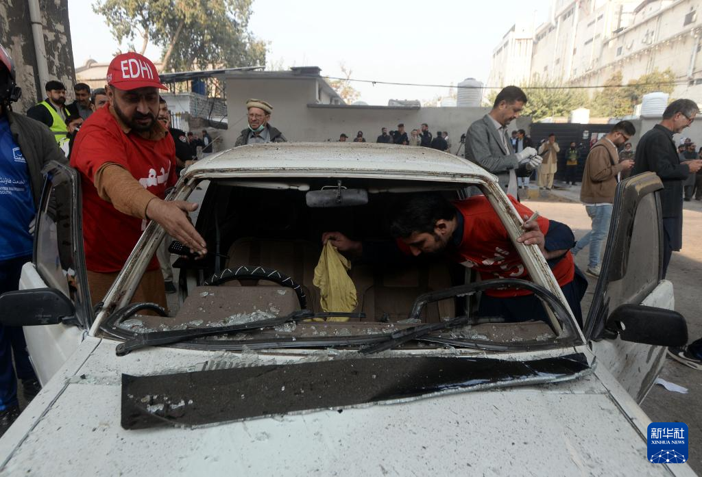 这是11月24日在巴基斯坦西北部开伯尔-普什图省首府白沙瓦拍摄的爆炸袭击现场。