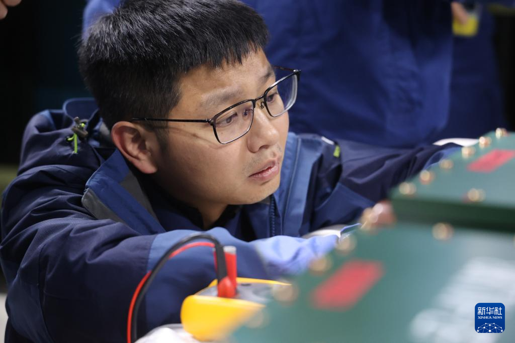 11月9日,工作人员在对神舟二十二号的供气管路进行吹除作业。