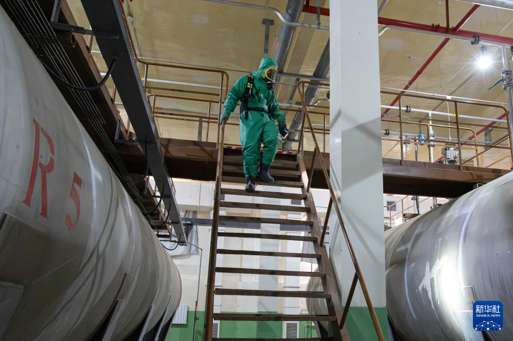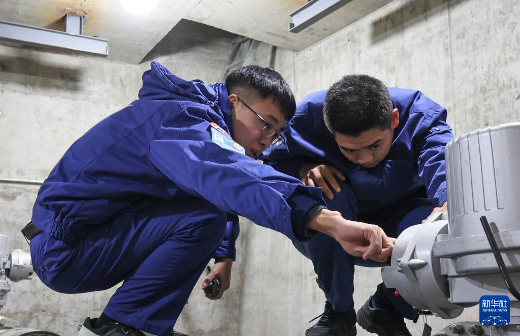11月13日,发射场消防人员在消防泵站检查设备状态。