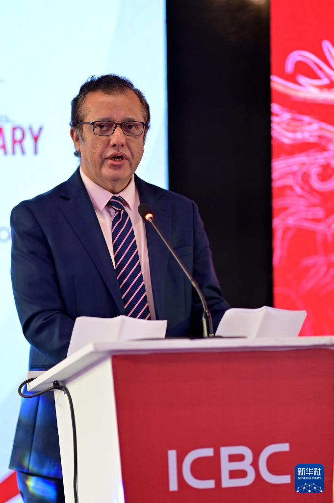 11月25日,在巴基斯坦南部城市卡拉奇,巴基斯坦国家银行(央行)执行董事穆罕默德·马利克在巴基斯坦人民币清算行(中国工商银行卡拉奇分行)举办的“人民币国际化在巴十周年”活动上致辞。