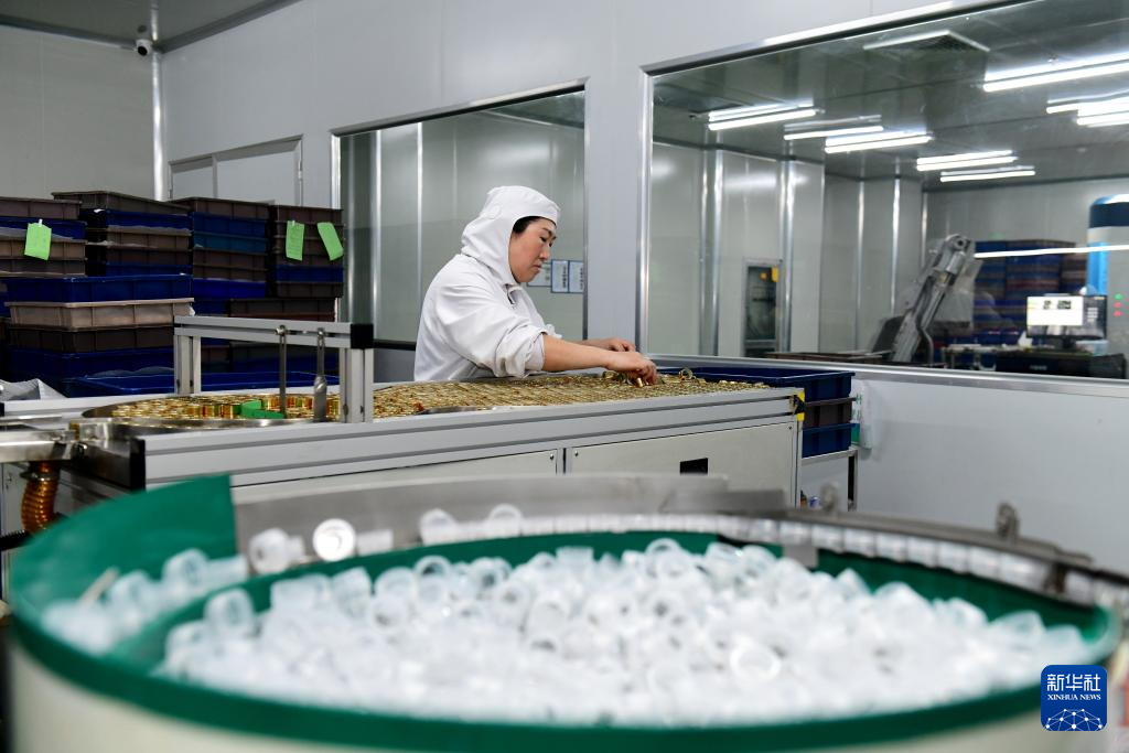 11月27日,在郓城县丁里长街道烟郓科技产业园,工作人员在瓶盖生产设备前忙碌。