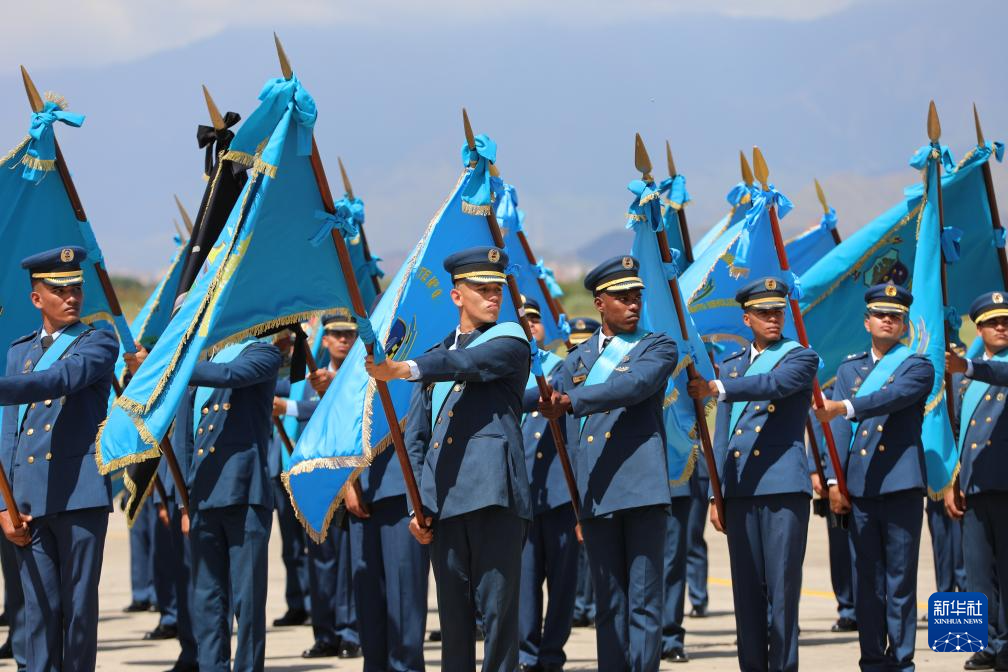 11月27日,在委内瑞拉马拉凯市的解放者空军基地,空军部队军人列队参加空军成立105周年纪念活动。