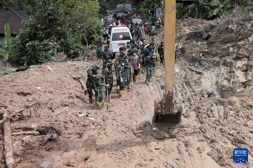 11月29日,在印度尼西亚北苏门答腊省北打巴努里,救援人员搜寻遇难者。