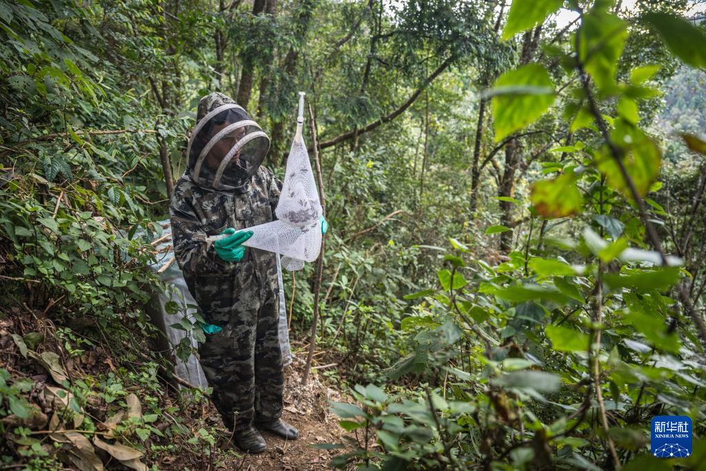11月19日,在云南省保山市龙陵县龙山镇河头村,村民查看野外收集的胡蜂。