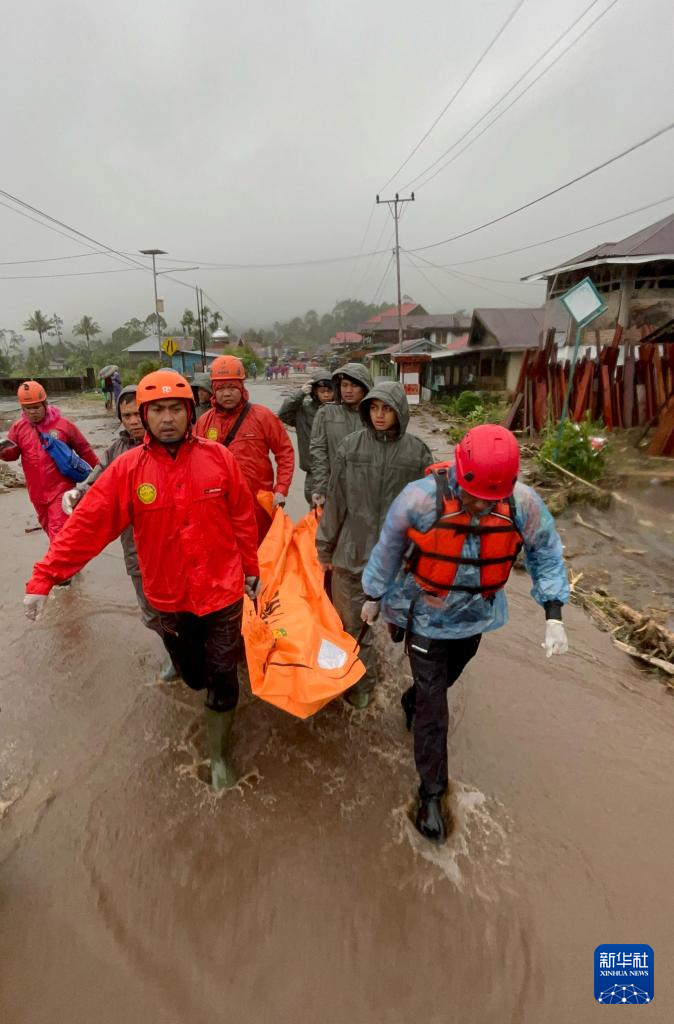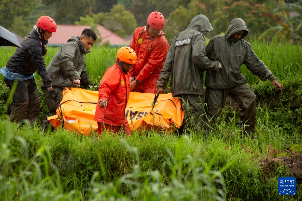 11月28日,在印度尼西亚西苏门答腊省,救援人员转运遇难者遗体。