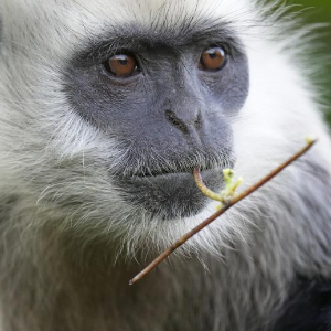 11月26日,在广西崇左白头叶猴国家级自然保护区板利片区,一只白头叶猴在进食。