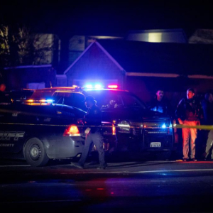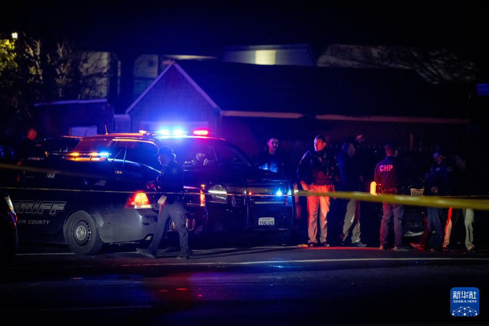 11月29日,在美国加利福尼亚州圣华金县斯托克顿市,警察在枪击事件发生地工作。