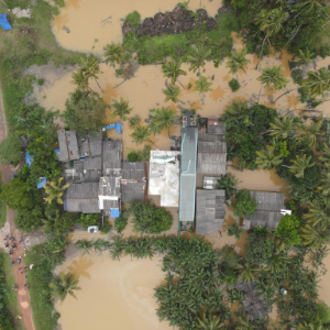 11月29日,在斯里兰卡凯勒尼耶地区,房屋被洪水淹没(无人机照片)。