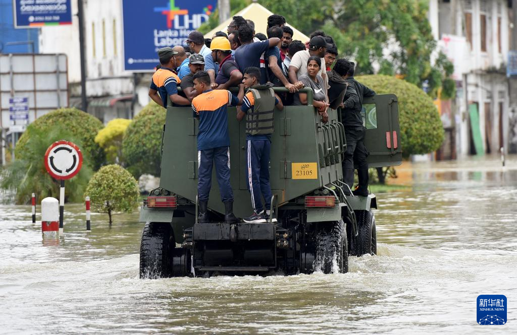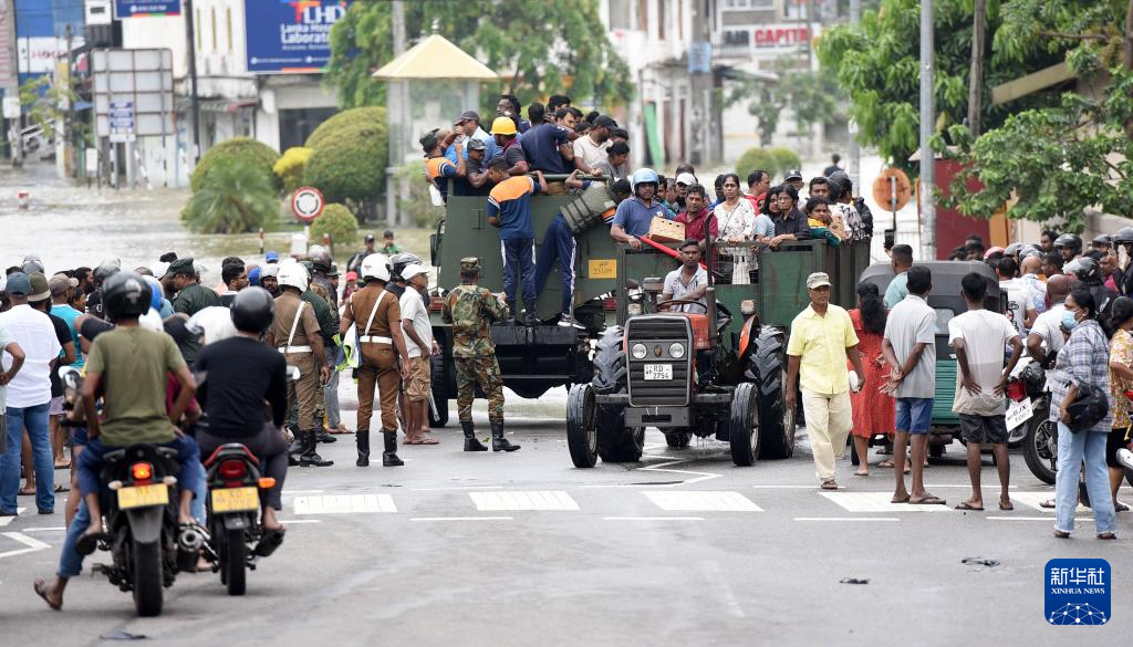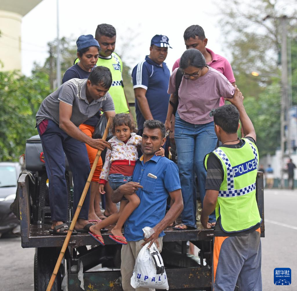 11月29日,在斯里兰卡加姆珀哈,灾民被转移至安全地点。