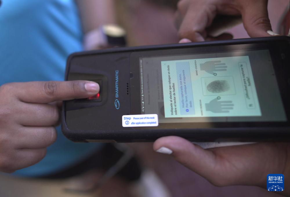 11月30日,在洪都拉斯特古西加尔巴一处投票站,一名男子登记指纹信息准备投票。