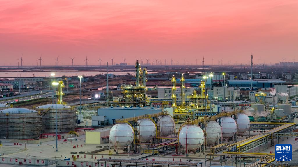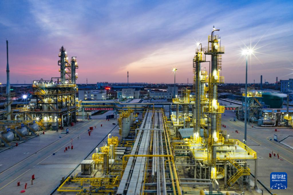 这是12月1日在天津市滨海新区拍摄的渤海油田渤西油气处理厂(无人机照片)。