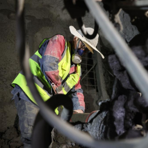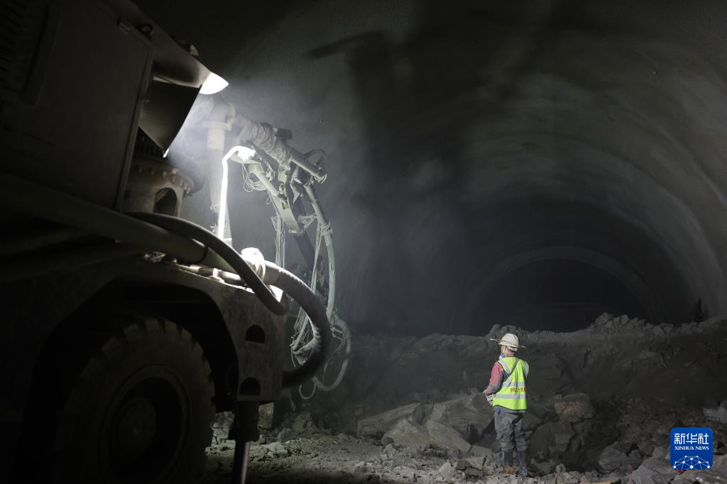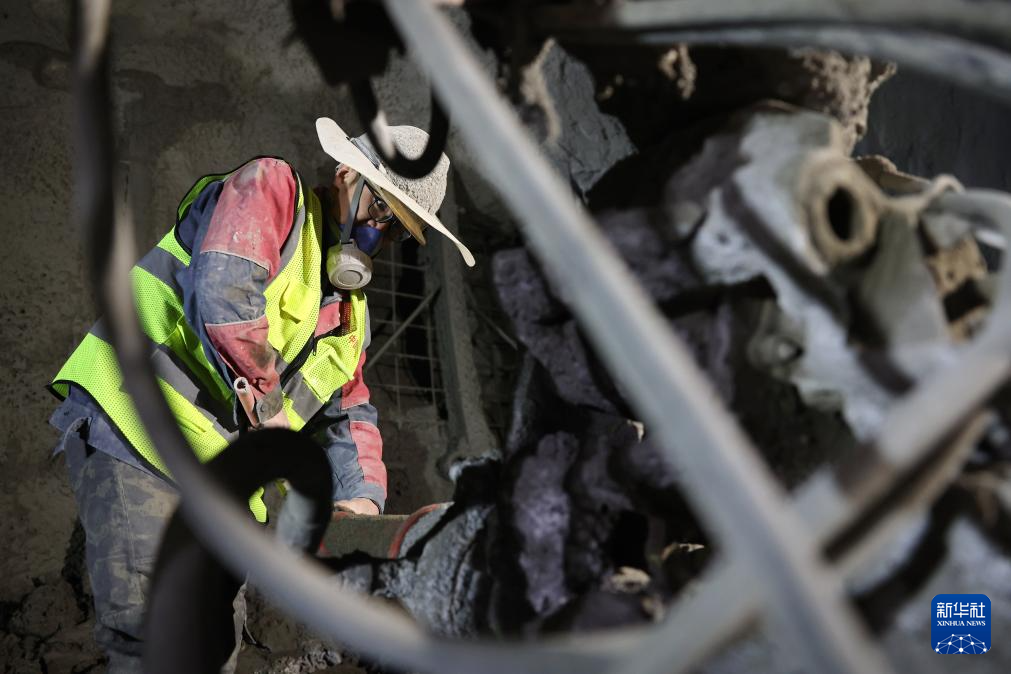 12月2日,中铁二十局的施工人员在兰永临高速公路辛家隧道内作业。