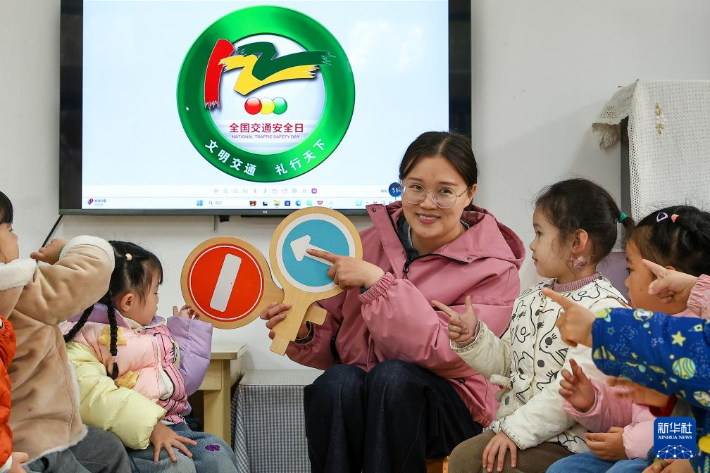 12月2日,在南京市太平巷幼儿园,老师给孩子们讲解交通安全知识。