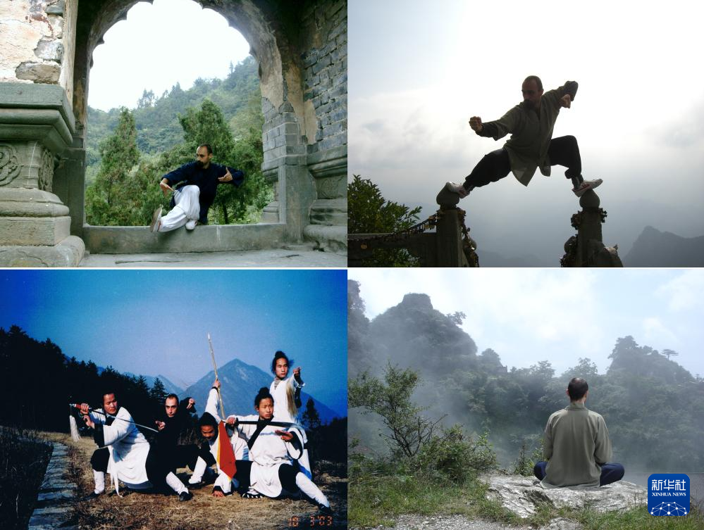这张拼版照片显示的是游理汉在中国练习功夫时的几个场景。
