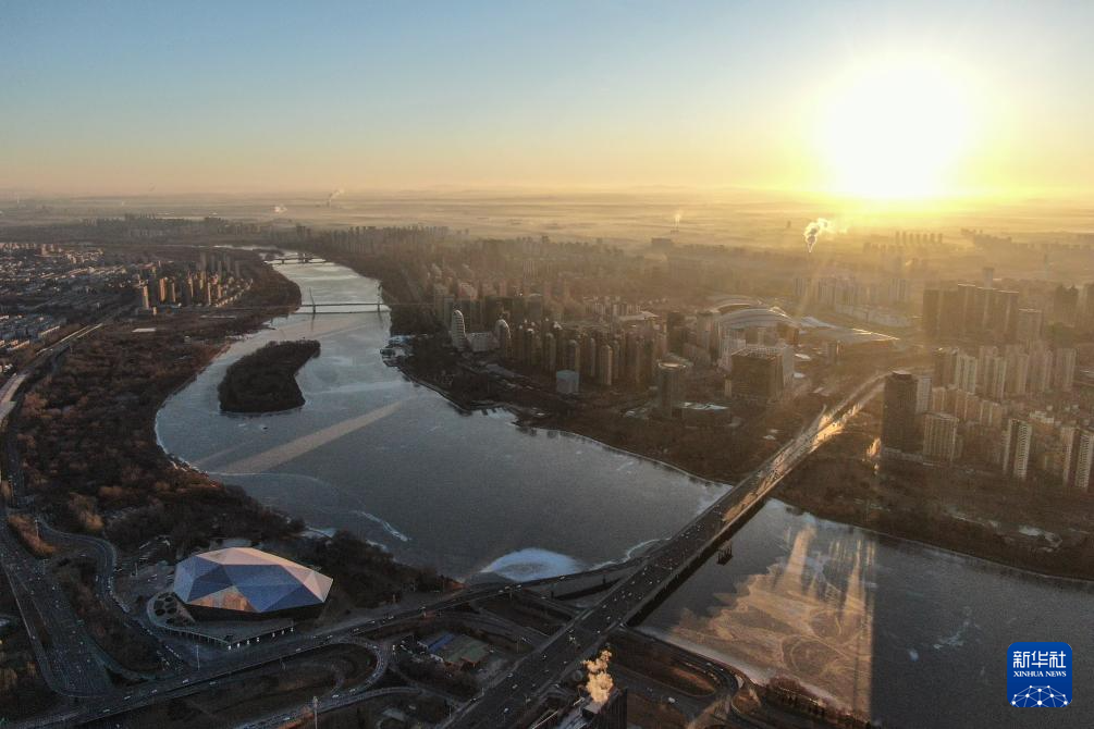 这是2025年1月1日拍摄的浑河两岸沈阳城市景色。