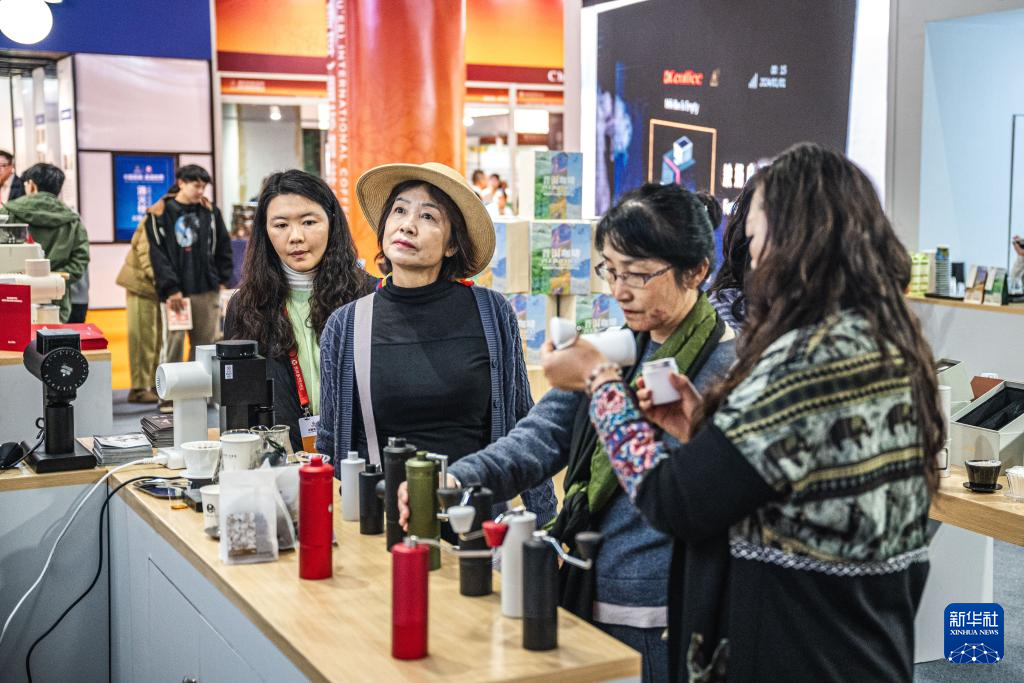 12月5日,人们在活动现场品尝埃塞俄比亚咖啡。
