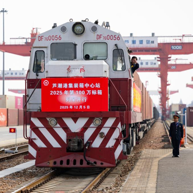 12月5日,一趟载有太阳能光伏组件、汽车零配件等货物的海铁联运班列从上海芦潮港集装箱中心站开出,标志着2025年以来上海海铁联运业务量突破100万标箱,同比增长近两成,创历史新高。