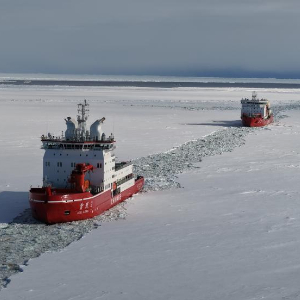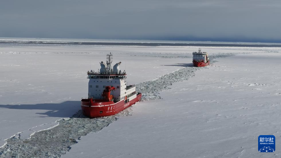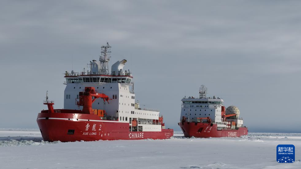 船时12月4日晚间,“雪龙”兄弟成功汇合。船时12月5日下午3时许,“雪龙2”号已将“雪龙”号引航至预定作业点,两船将在该作业点共同完成后续卸货任务。