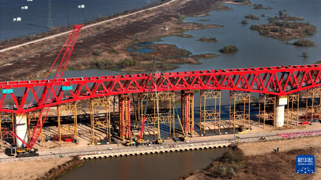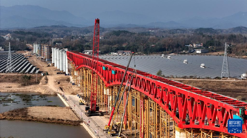 合武高铁金寨史河特大桥钢桁梁合龙-新华网