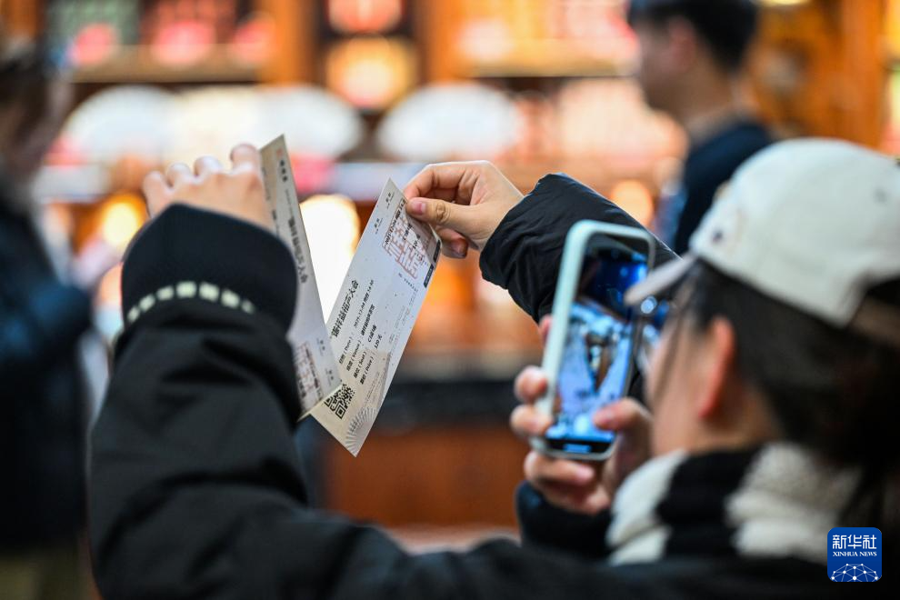 12月4日,在天津市红桥区谦祥益相声茶馆,观众在演出前拍摄票根。