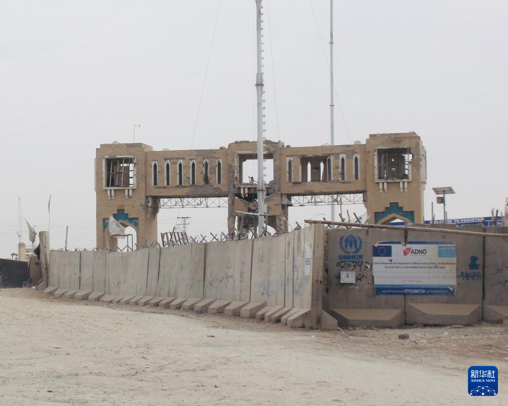 这是12月6日在阿富汗斯平布尔达克镇拍摄的受损的阿巴边境“友谊门”。