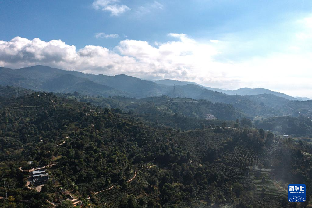 12月6日在云南省普洱市拍摄的咖啡田(无人机照片)。