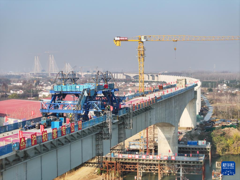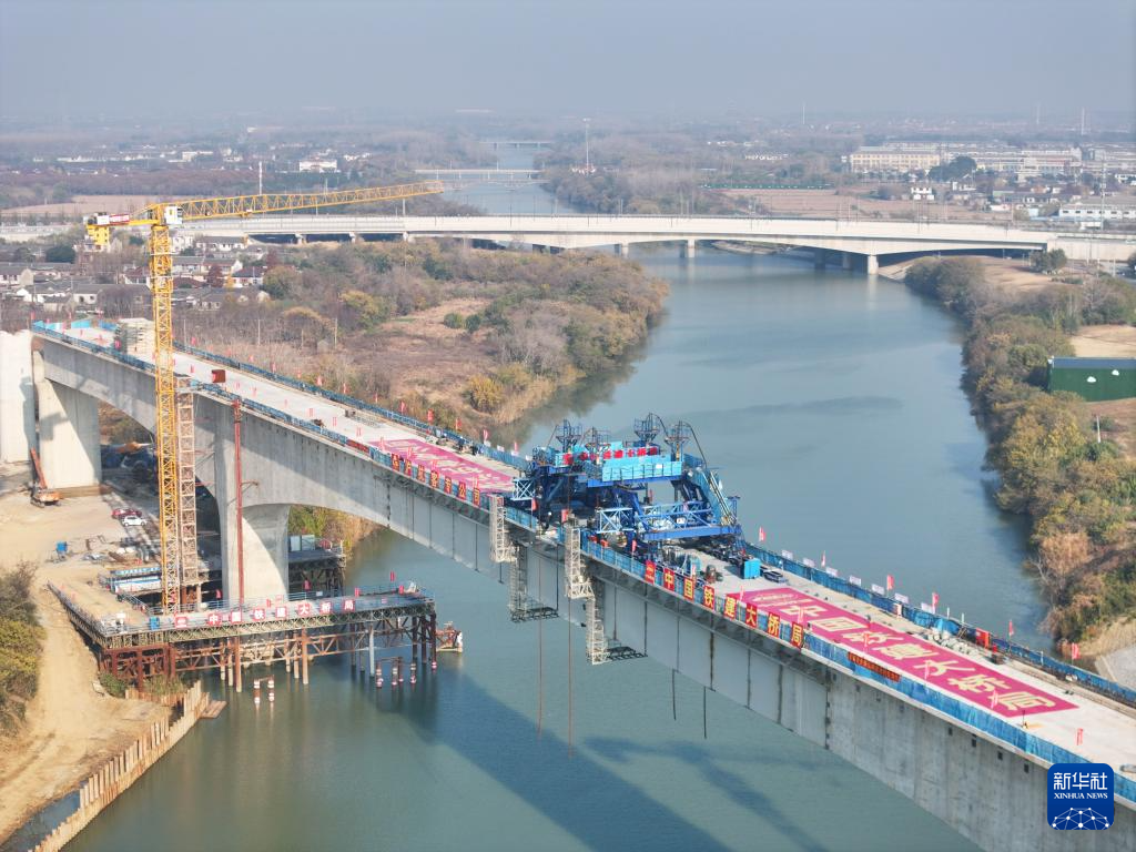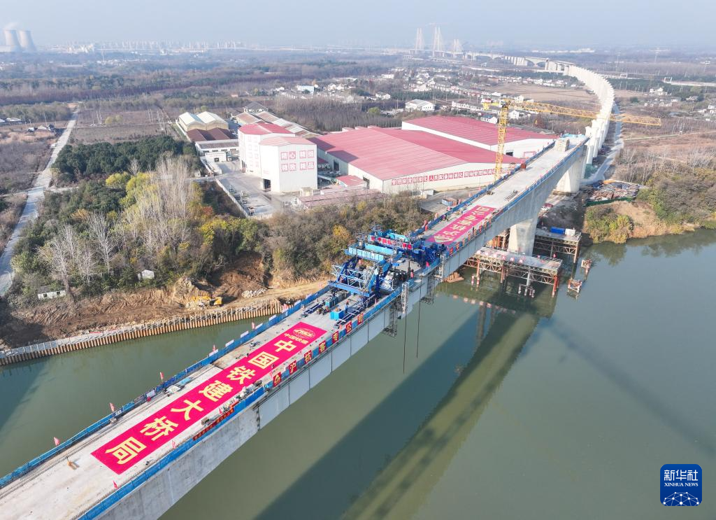 沪渝蓉高铁通泰扬特大桥跨太平河桥精准合龙-新华网