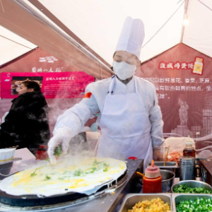 12月6日,商家在江苏省靖江市长江文化中心活动现场制作“苏味”食品。