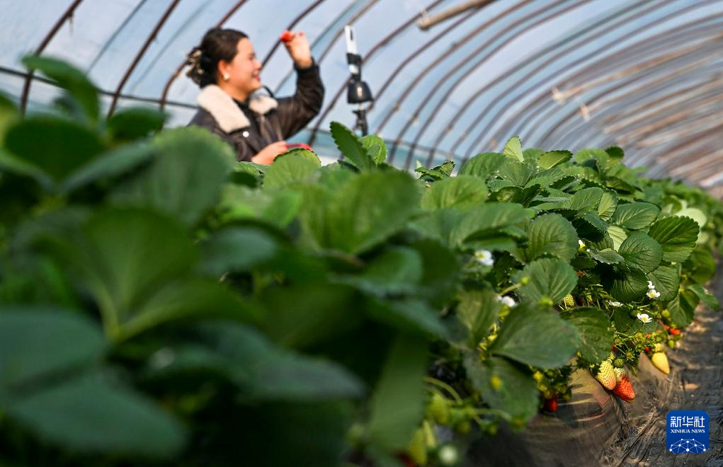 12月6日,在山东省威海市文登区文登营镇,工人管理草莓。