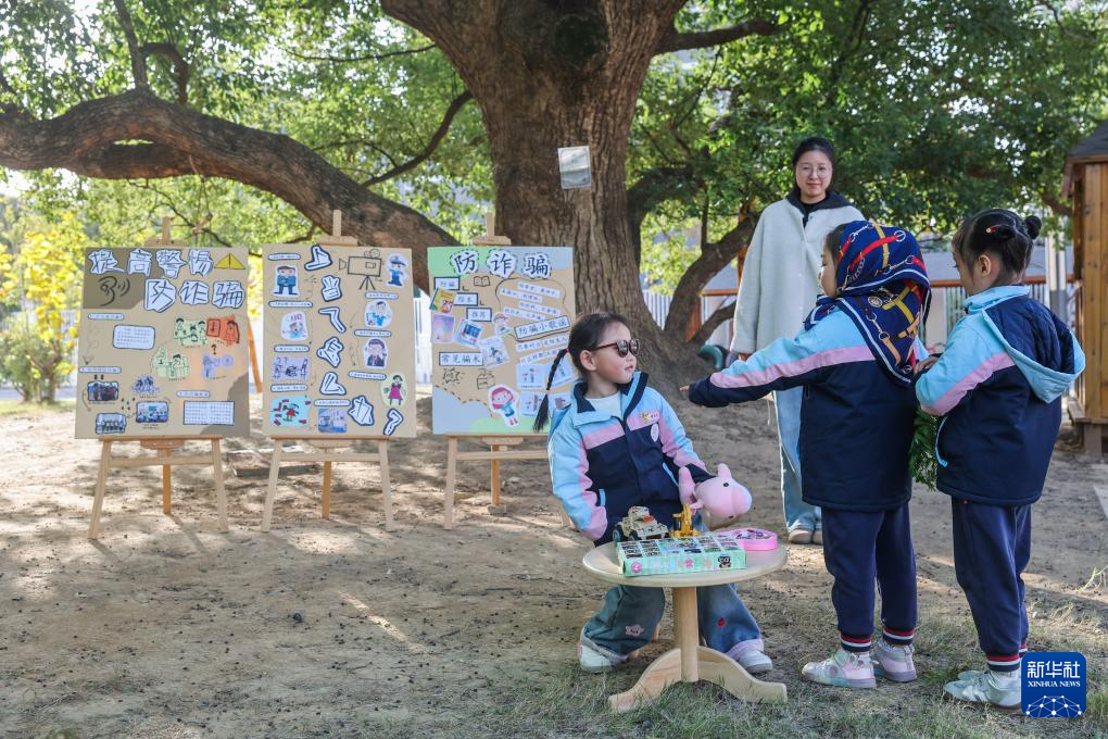 12月9日,诸暨市暨南街道中心学校三江幼儿园的孩子们在老师的指导下演出防骗情景剧。