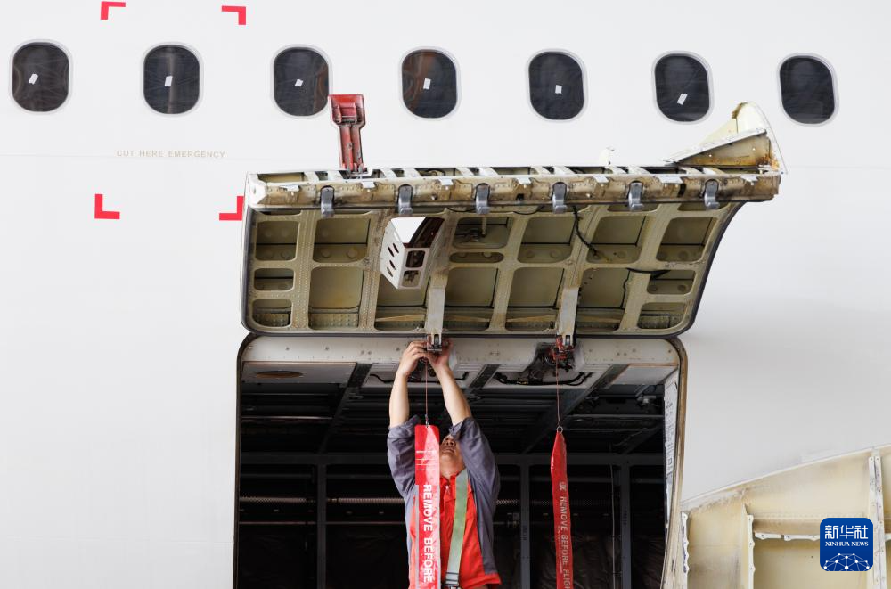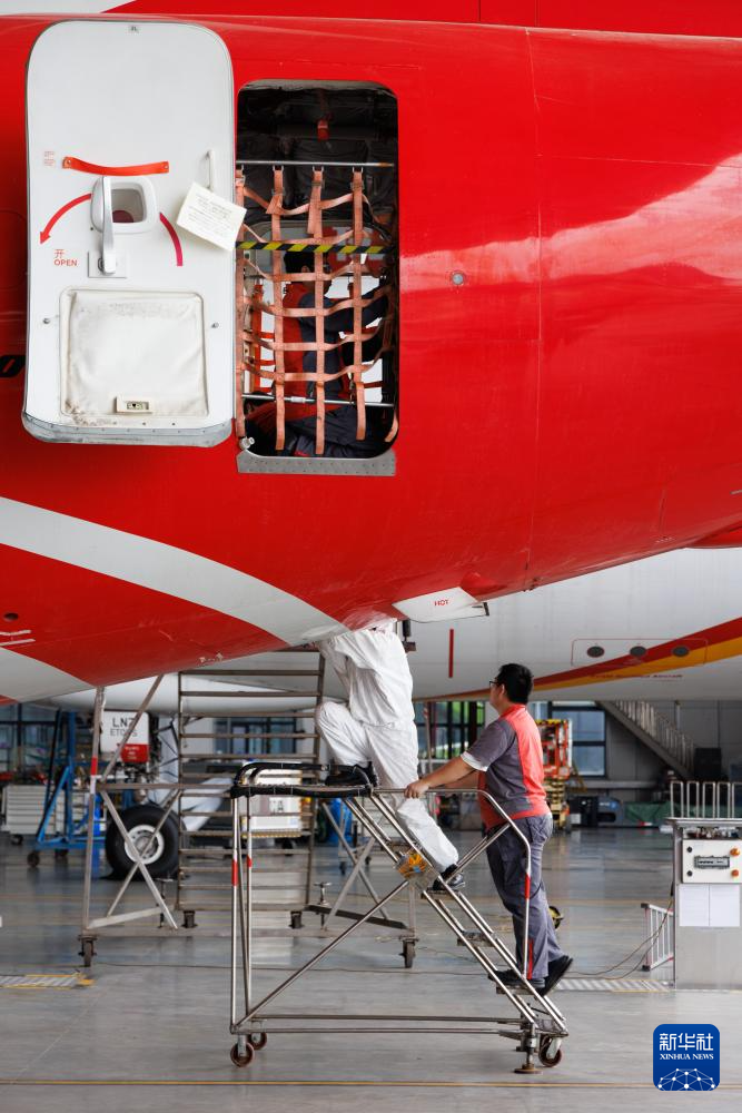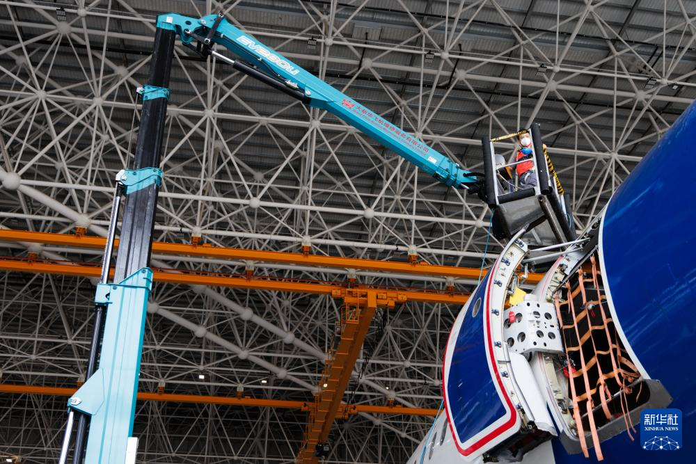 12月9日,工作人员在海南自贸港一站式飞机维修产业基地维修飞机。
