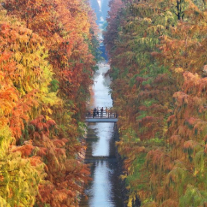 12月10日,游客在湖南省衡阳市雁峰区岳屏镇隆桥村的水杉林休闲游玩(无人机照片)。