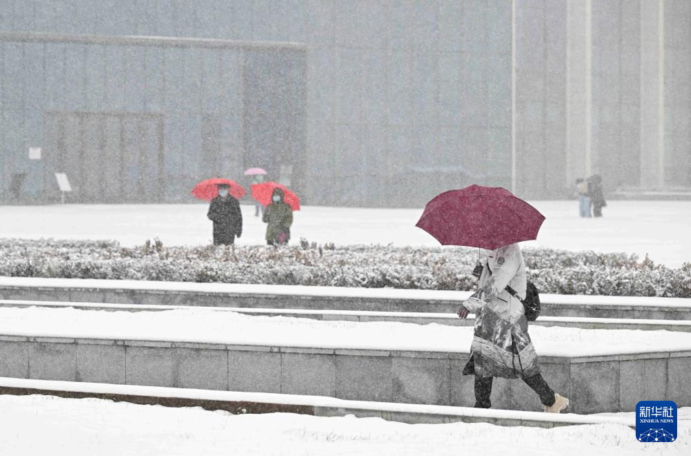 12月12日,在河北省石家庄市桥西区,行人冒雪出行。