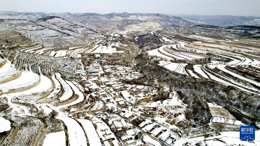 12月12日在甘肃省平凉市静宁县八里镇红林村拍摄的雪景(无人机照片)。