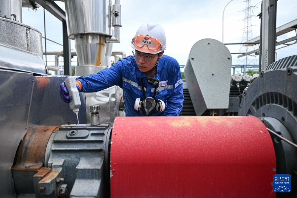 在海南自贸港重点园区——东方临港产业园内,中海油富岛(海南)化工有限公司的工人对丙烯腈联合装置开展巡检(11月7日摄)。