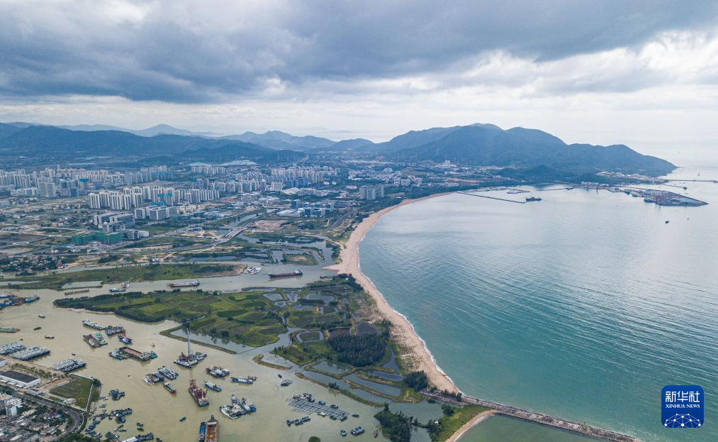 在海南自贸港重点园区——三亚崖州湾科技城拍摄的南山港(无人机照片,10月30日摄)。