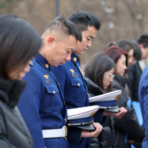 12月13日,人们在黑龙江哈尔滨东北烈士纪念馆参加悼念活动。