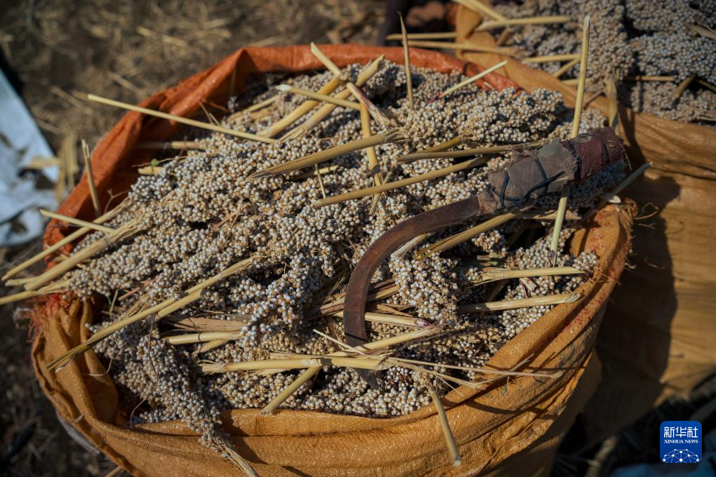 12月12日,在苏丹东部卡萨拉州瓦德希卢地区,农民在田间收获高粱。