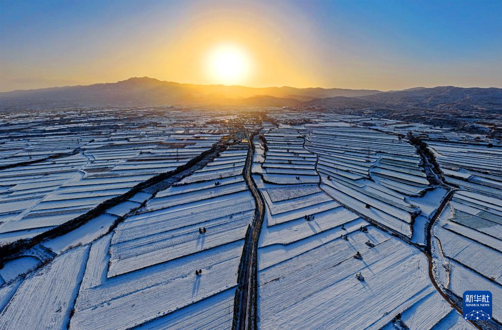 12月13日在山西省临汾市襄汾县陶寺乡中梁村附近拍摄的梯田雪景(无人机照片)。