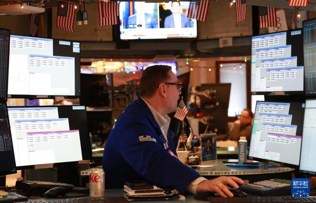 12月12日,一名交易员在美国纽约证券交易所交易大厅内工作。