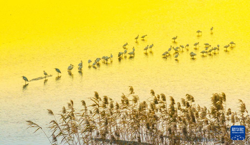 12月15日,群鸟在江苏兴化里下河国家湿地公园栖息(无人机照片)。