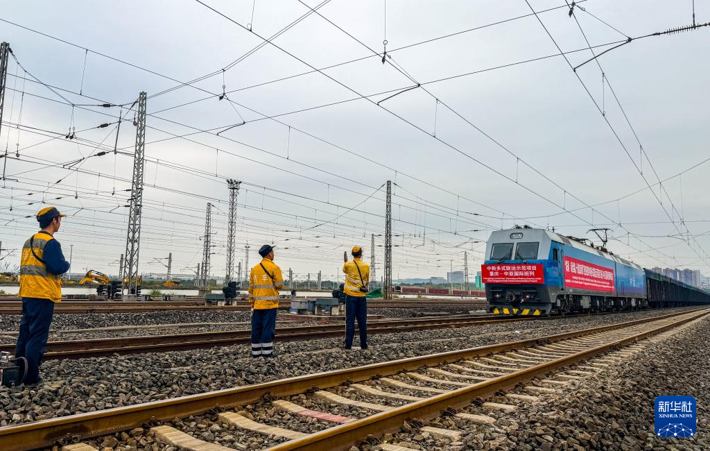 12月15日,一列装载化工产品、摩托车零配件等货物的中新多式联运示范项目重庆—东南亚班列缓缓驶出重庆鱼嘴站,将向南经广西钦州以铁海联运方式发往新加坡。与此同时,另一条轨道上,一列装载汽车KD件的中新多式联运示范项目重庆—中亚国际班列同步发车,将向西经阿拉山口以国际铁路联运方式发往哈萨克斯坦。