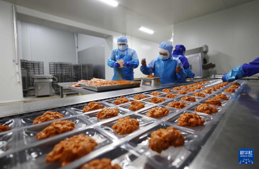 12月16日,工人在山东省临沂市沂南县铜井镇一家食品生产企业生产流水线作业。