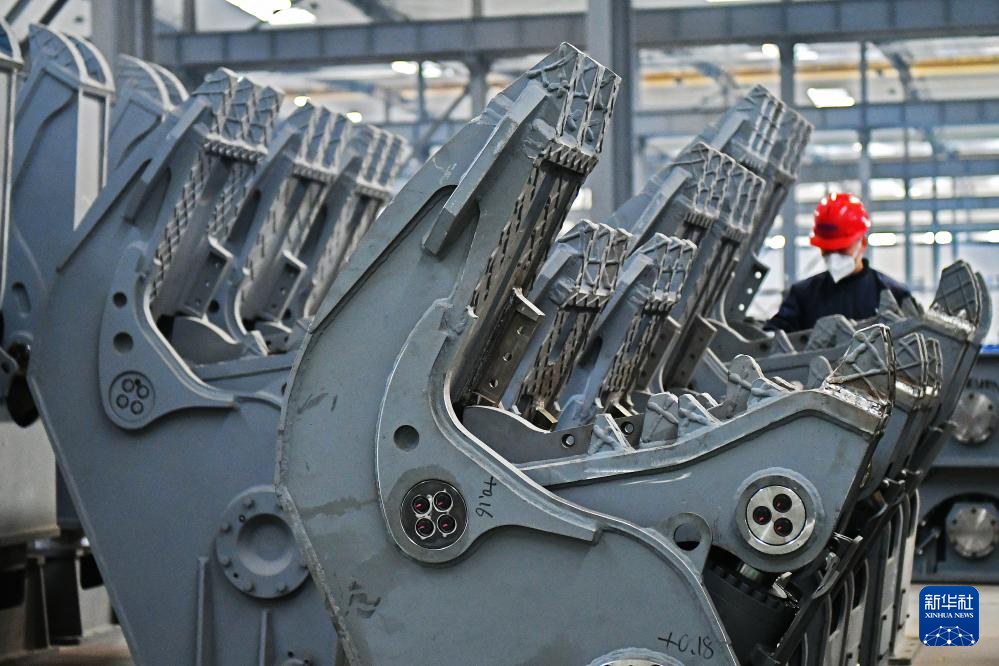 12月16日,在浙江省湖州市德清县雷甸镇的浙江建机德清精益智能工厂,机器臂在进行生产作业。