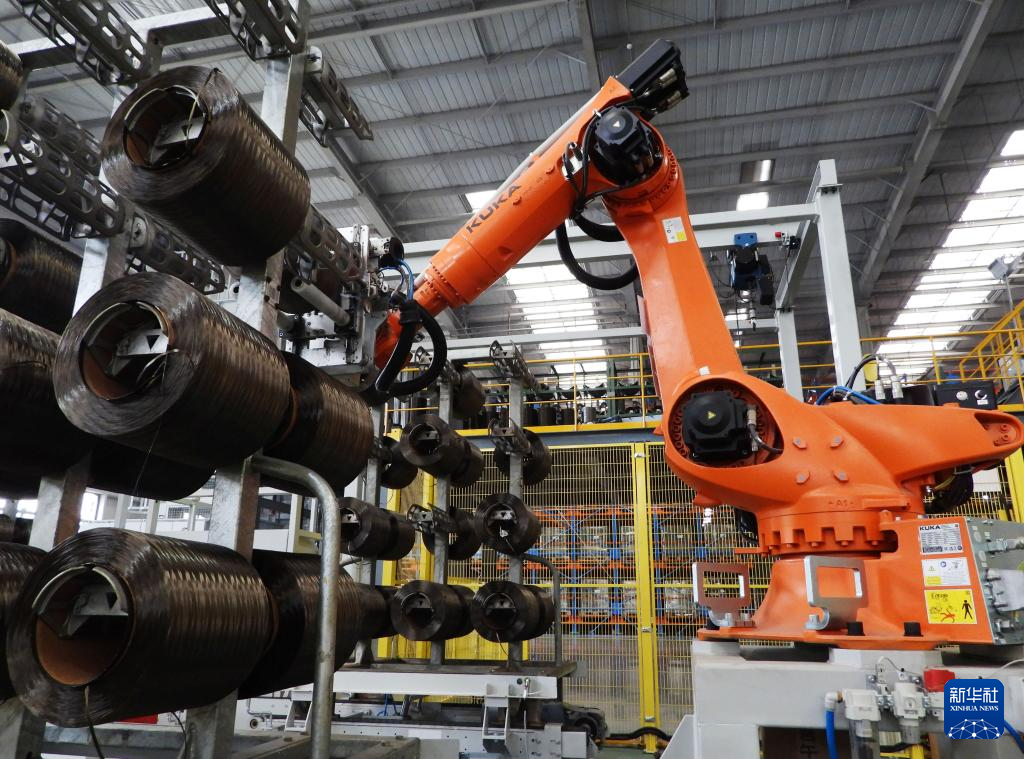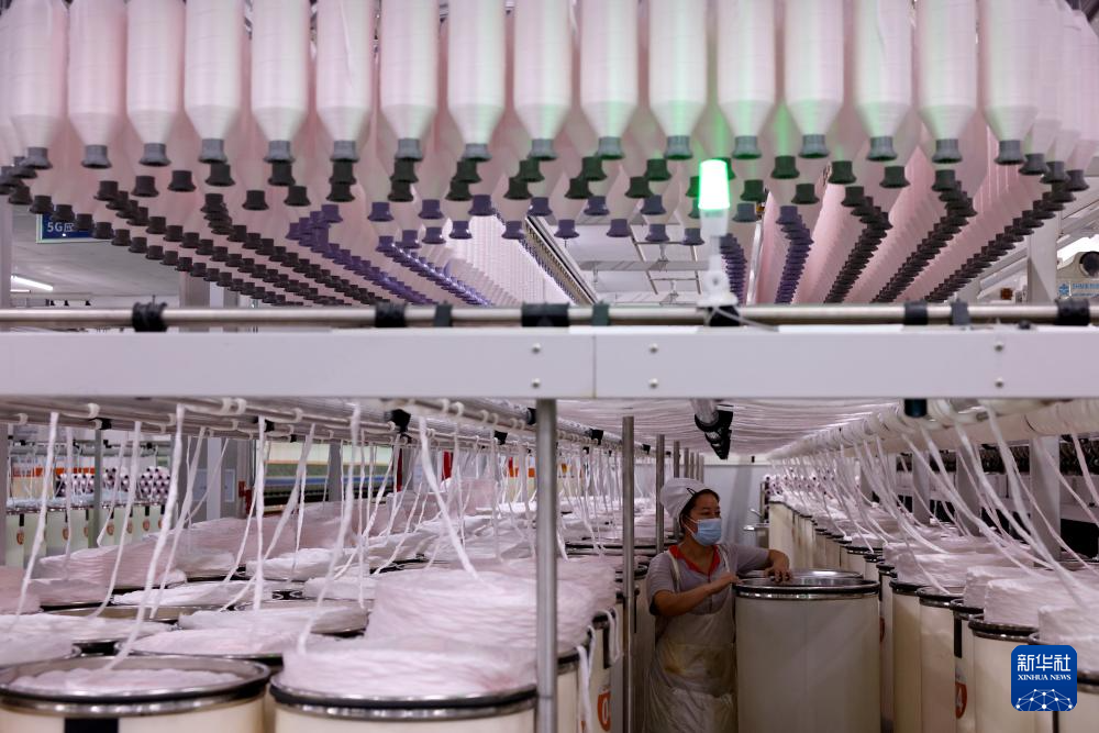 12月16日, 工人在山东枣庄经济开发区一家企业的智能化生产线上加工高端纱线。