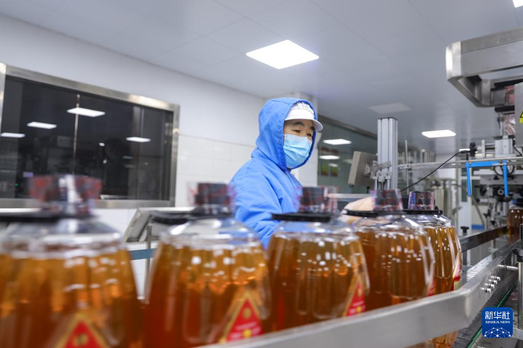 12月16日,在山东省青岛市李沧区兴城路街道一家食用油企业,工人在花生油生产线上忙碌。