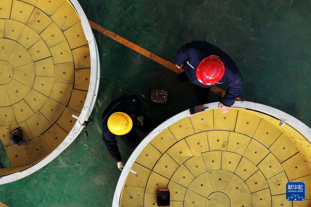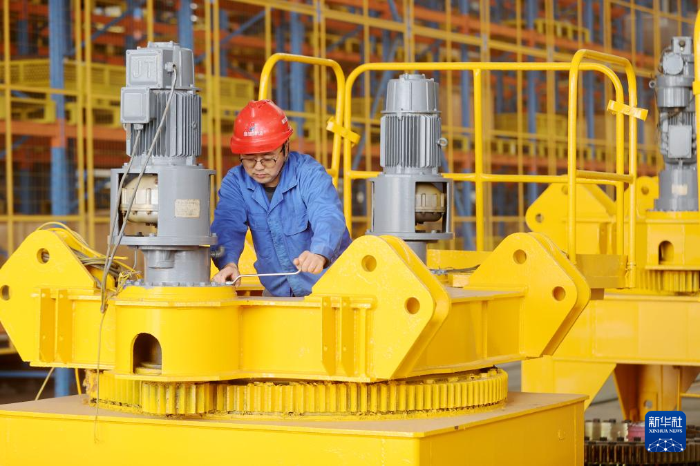 12月16日,在浙江省湖州市德清县雷甸镇的浙江建机德清精益智能工厂,工人在赶制塔机回转机构产品。