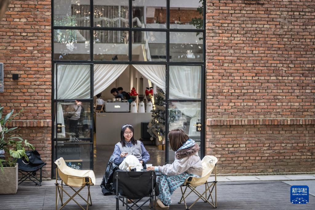 12月16日,人们在云南省曲靖市“重机印象”创意园一处咖啡馆内喝咖啡。